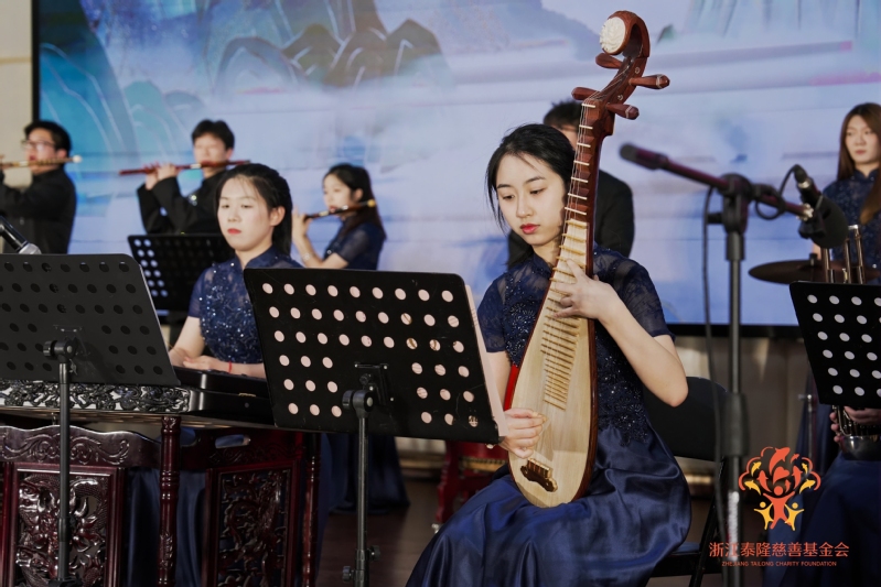 此次公益项目由浙江泰隆慈善基金会发起,湖州师范学院教育发展基金会与湖州师范学院音乐学院共同策划执行,旨在通过音乐的桥梁,弘扬中国传统文化,提升居民的艺术鉴赏力。据悉,整场演出14个节目,汇聚了民乐合奏、重奏、独奏、歌曲演唱及舞蹈等多种艺术形式,湖州师范学院音乐学院的师生们与本地社区居民携手,共同呈现了一场“视听盛宴”。民乐的悠扬旋律、歌声的动人演绎、舞蹈的优雅灵动,无不展现出中国传统文化的独特魅力和现代创新。