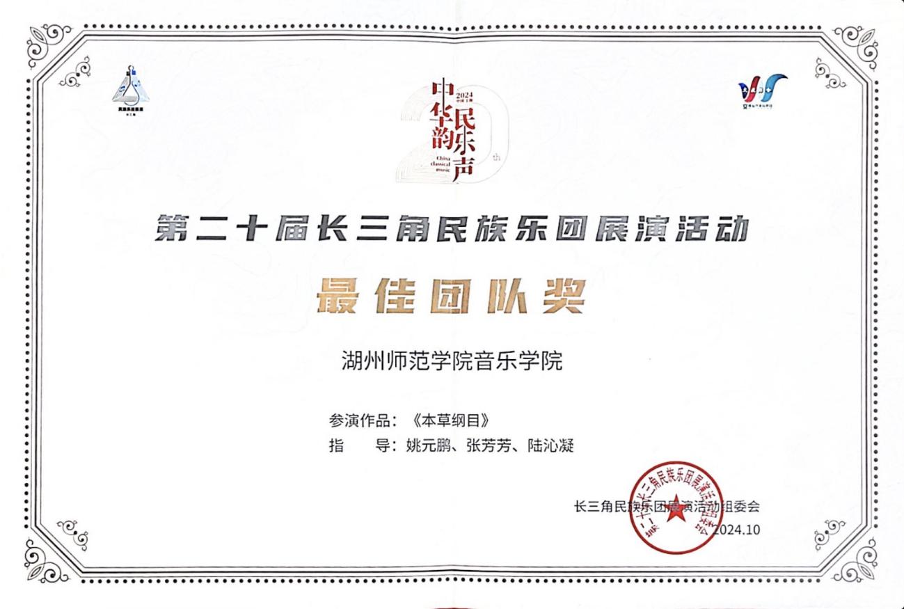 演出现场,我院“锋芒”民族管弦乐团的同学们满怀激情,自信而精彩地演绎了民族管弦乐作品《本草纲目》,将民乐的美妙与魅力展现得淋漓尽致,赢得了现场观众的阵阵掌声,团队荣获组委会颁发“最佳团队奖”。我院与来自上海、浙江、江苏、安徽、北京、福建等多个省市的百余支民族乐团队齐聚一堂,共同展示了国乐的独特风采,这不仅彰显了长三角地区在民乐教育教学方面的广泛普及,也深刻体现了其深入发展的程度。此次活动旨在实施学校美育浸润行动,围绕“五育并举”,提升核心素养,促进学生全面发展。同时,也为大中小学生、民乐爱好者、艺术工作者提供了一个展示交流的平台,丰富文化生活,讲述中国故事,激励新时代青少年成长为文化自信、志存高远的社会主义建设者和接班人。