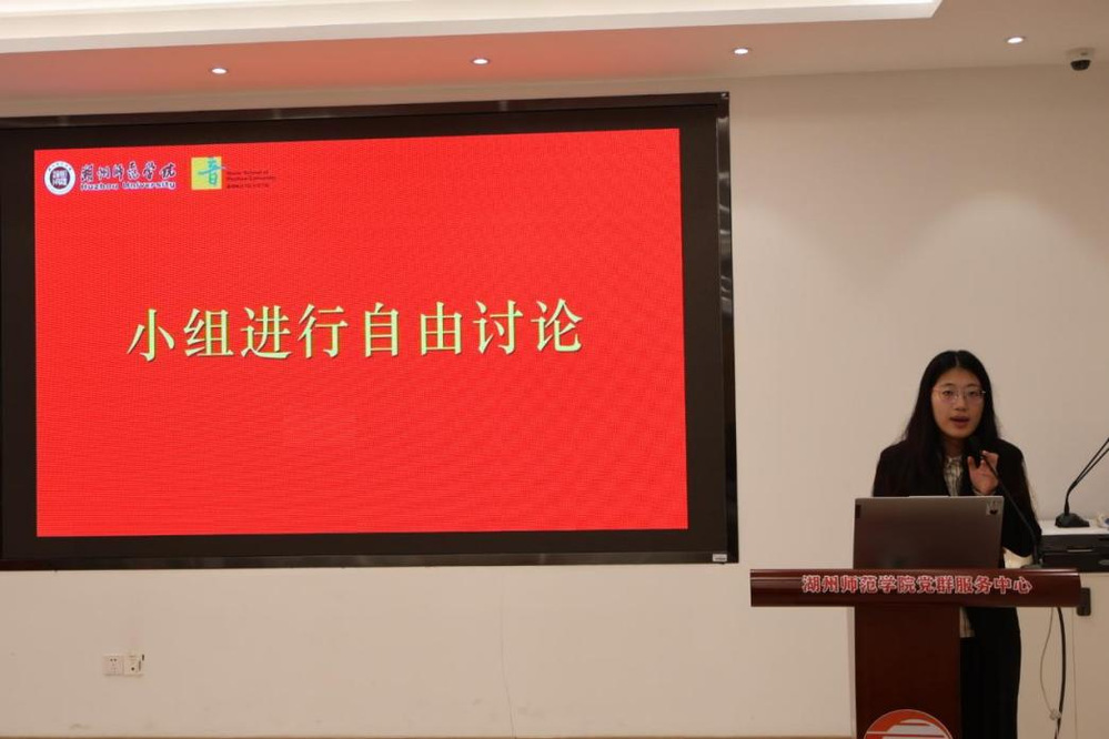 随后,学生党员代表进行了音乐党课环节。孙一婷的分享让我们了解了《英雄赞歌》的创作历史及背景,饱含着对英雄先烈们的敬佩与缅怀,随着刘江瑶同学的演奏,他激昂的笛声仿佛将大家带回了那个战火纷飞的年代,感受到了革命英雄们的英勇与无畏。