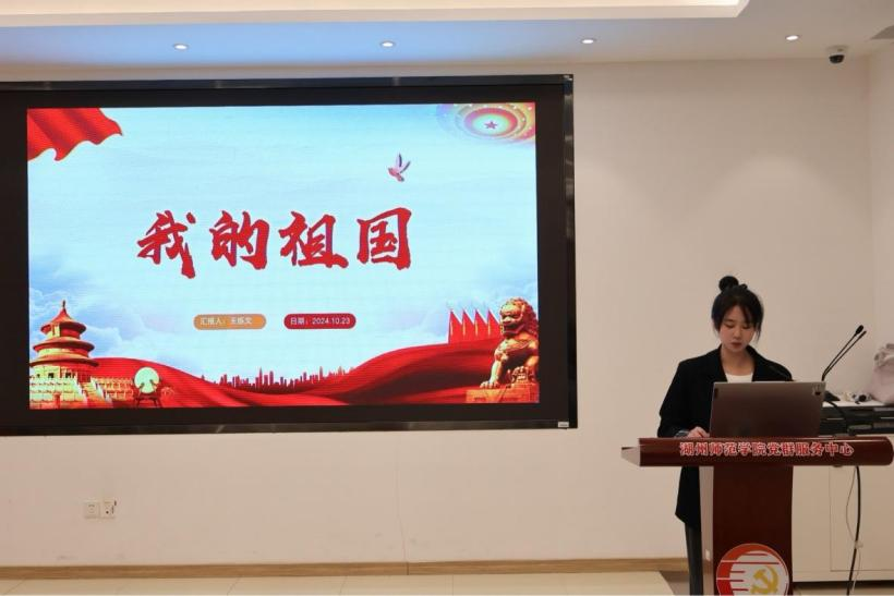 最后,全体党员共同合唱了《歌唱祖国》。在激昂的歌声中,大家用歌声表达了对祖国的热爱和祝福,也展现了新时代青年学生的蓬勃朝气和昂扬斗志。
