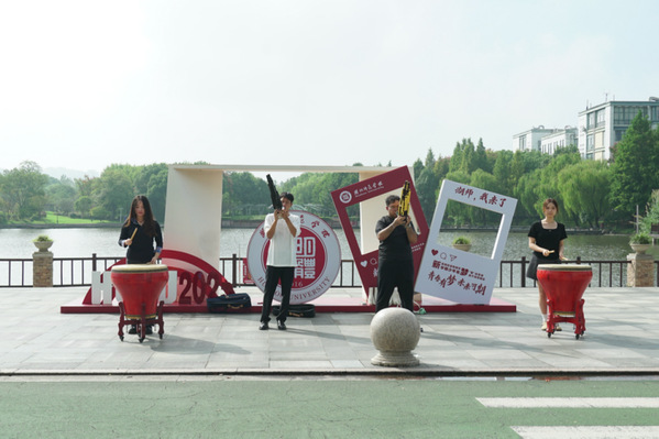 烈日炙烤大地,热浪裹挟尘土,新生们迈着坚毅步伐前行,汗水滑落、疲惫渐生。此时,由音乐学院连队新生组成的军训文工团,已携乐器守候在拉练路线旁,以专业素养化身“文艺兵”,搭建起沿途的精神“能量补给站”。