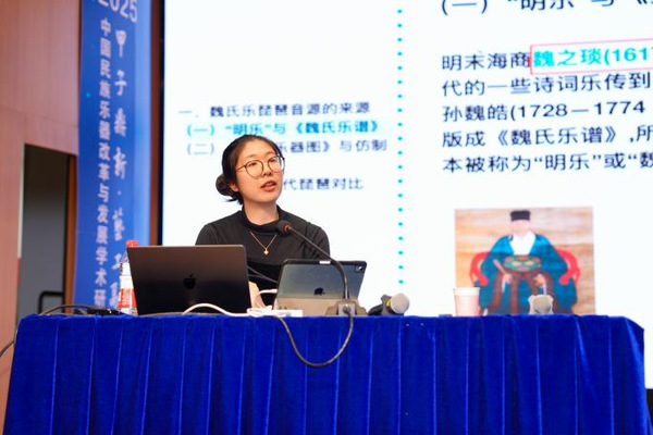 2025年11月7日,由中国民族管弦乐学会(国家一级协会)、上海交通大学党委宣传部(文明办)联合主办的“甲子鼎新·艺工融合——中国民族乐器改革与发展学术研讨会”暨“民乐大师进校园·上海国际艺术节音乐会”在上海交通大学举行。湖州师范学院音乐学院讲师、作曲家林舒瑜受邀作主旨报告《古律新声——明代魏氏乐琵琶的音源制作与当代启示》,系统阐述了魏氏乐琵琶的历史音律、声学特征与数字化复原过程,并展示了其自研音源“Pipa1617”。报告提出以AI与声学建模实现“古乐复原”的新路径,为民族乐器改革与数字音乐创作提供了创新范例。